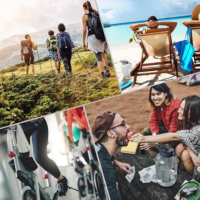 - 128oz Large Capacity Water bottle: This sturdy big water bottle holds 1 gallon of water to meet the a whole-day water intake and fitness hydration needs of 2 adults and ensures you enjoy one water jug without having to refill it frequently especially when you’re working in office or training hard outdoors & indoors. The ergonomic handle built-in allows for easy water transportation, perfect for carrying out to do outdoor practice and activities on hot summer days.
