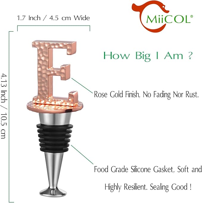- Fashionable and Practical - The MiiCol wine stopper features a stylish design with personalized initials, adding a pop of color to any table setting. Its distinctive lettering helps identify different wines or owners, making it an ideal gift for special occasions.