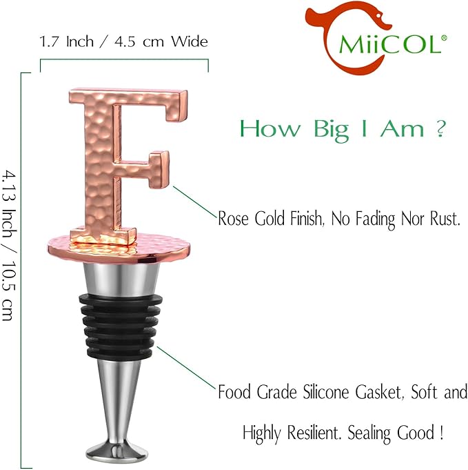- Fashionable and Practical - The MiiCol wine stopper features a stylish design with personalized initials, adding a pop of color to any table setting. Its distinctive lettering helps identify different wines or owners, making it an ideal gift for special occasions.