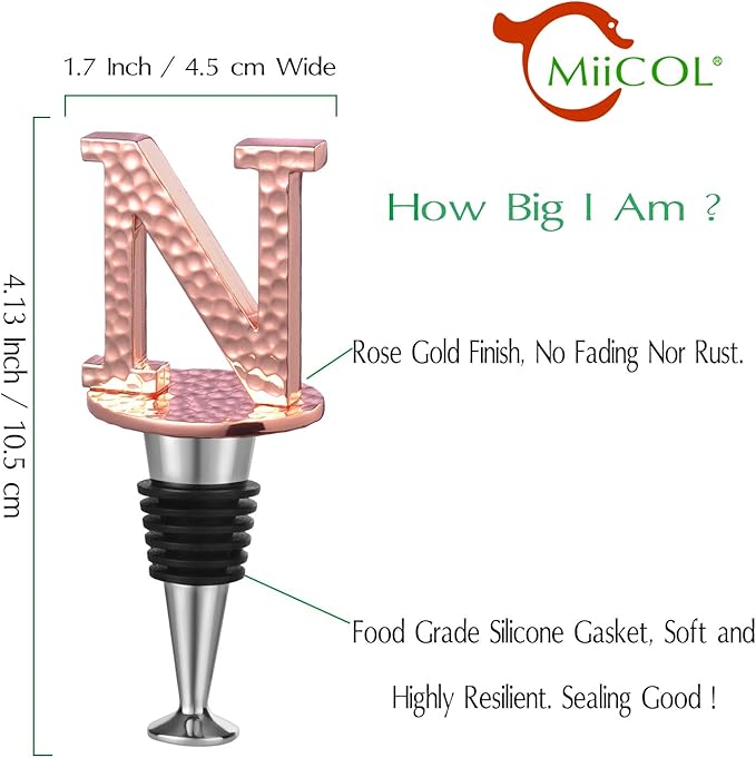 - Fashionable and Practical - The MiiCol wine stopper features a stylish design with personalized initials, adding a pop of color to any table setting. Its distinctive lettering helps identify different wines or owners, making it an ideal gift for special occasions.