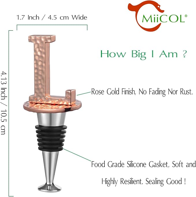 - Fashionable and Practical - The MiiCol wine stopper features a stylish design with personalized initials, adding a pop of color to any table setting. Its distinctive lettering helps identify different wines or owners, making it an ideal gift for special occasions.