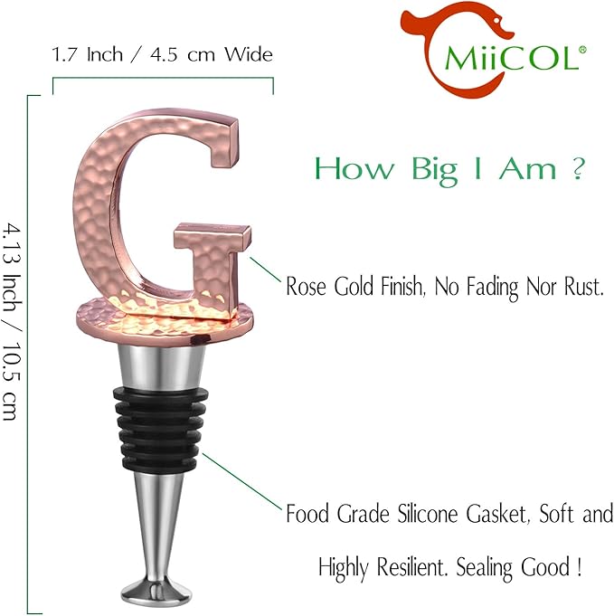• Fashionable and Practical - The MiiCol wine stopper features a stylish design with personalized initials, adding a pop of color to any table setting. Its distinctive lettering helps identify different wines or owners, making it an ideal gift for special occasions.