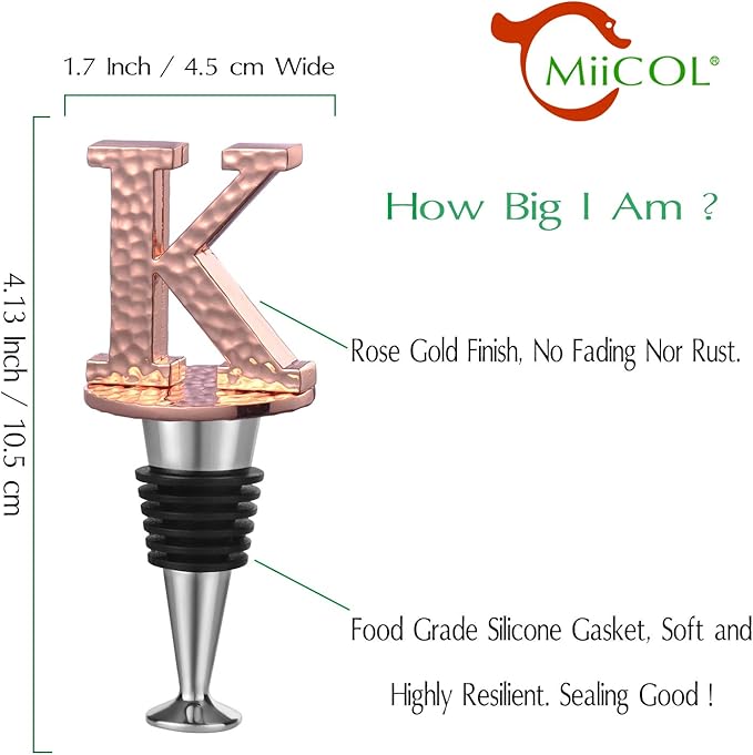 • Fashionable and Practical - The MiiCol wine stopper features a stylish design with personalized initials, adding a pop of color to any table setting. Its distinctive lettering helps identify different wines or owners, making it an ideal gift for special occasions.