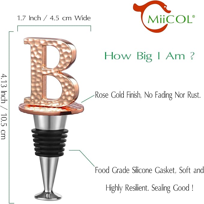 - Fashionable and Practical - The MiiCol wine stopper features a stylish design with personalized initials, adding a pop of color to any table setting. Its distinctive lettering helps identify different wines or owners, making it an ideal gift for special occasions.
