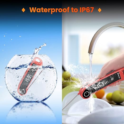 • Completely Waterproof: Compared to other meat thermometers, the ST49 has a best-in-class IP67 waterproof rating, meaning it can withstand up to 1 meter of water. No more worrying about contamination, just run under water and rinse with soap like other kitchen tools.