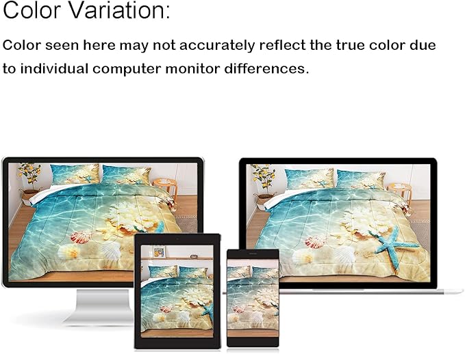 Bedbay Beach Comforter Twin Size Bed Coastal Bedding Set 3 Pieces Soft Microfiber Fluffy Comforter Set Sea Life Starfish Beach Style Comforter Set for All Seasons(Coastal,Twin)