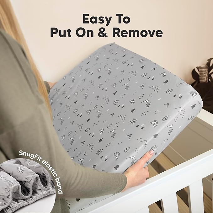 - Easy To Put On - Our fitted crib sheet uses SnugFit Tech, a smart fabric knit that allows the fabric to stretch when you are fitting or removing the crib sheets neutral from the toddler crib. No more struggling with rigid fabric!