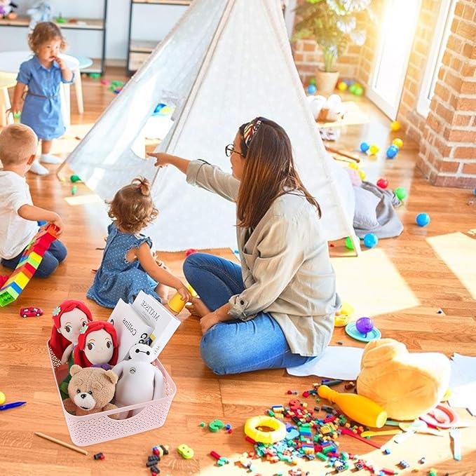 - PROPER STORAGE SPACE – 13.8 x 11.2 x 5.1-inch storage bin containers use for organizing small item, such as soaps, toiletries, books, sunglasses, gloves, baby toys, hats, etc. Keeps everything organized