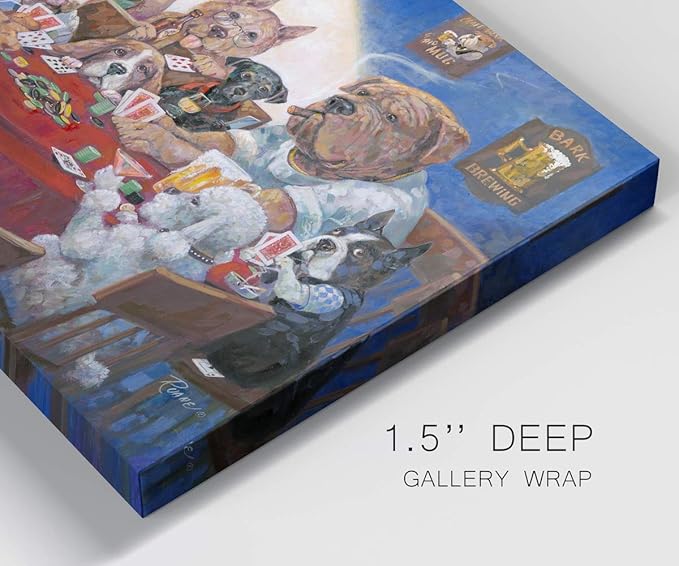 Renditions Gallery Canvas Animal Wall Art Home Paintings & Prints Poker Playing Doggos Abstract Family Festival Modern Artwork Decorations for Bedroom Office Kitchen - 24"x36" LT33