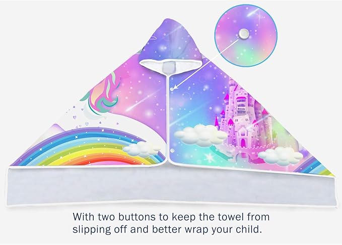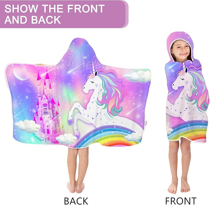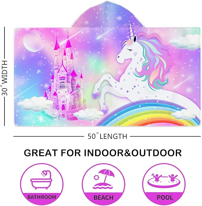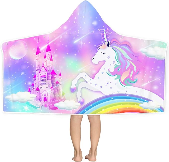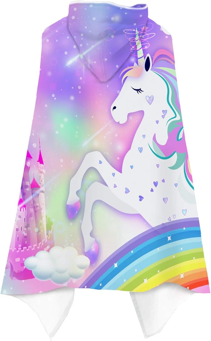 - [UNIQUE ADVANTAGES]: It is not the same as, but it's smoother and stronger than or terry cloth quality. Fast Quick drying - 3 times faster than. The unicorn rainbow hooded beach towel can absorb up to 7 times its weight