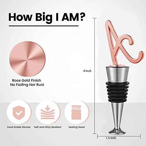 - The Cute Rose Gold Finish Stoppers: Melts with popular holiday elements and unique letter to accent your favorite wine bottle. The beautiful looking makes any angle lovely.