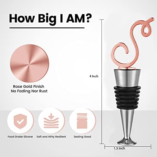 - The Cute Rose Gold Finish Stoppers: Melts with popular holiday elements and unique letter to accent your favorite wine bottle. The beautiful looking makes any angle lovely.