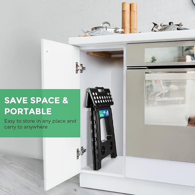 - 【Lightweight & Portable】Easy to carry around, this foldable step stool can be used across rooms or taken outdoors. Its compact design fits into any storage space, even your car for those camping trips. Upgrade your portability with Solid Strength.