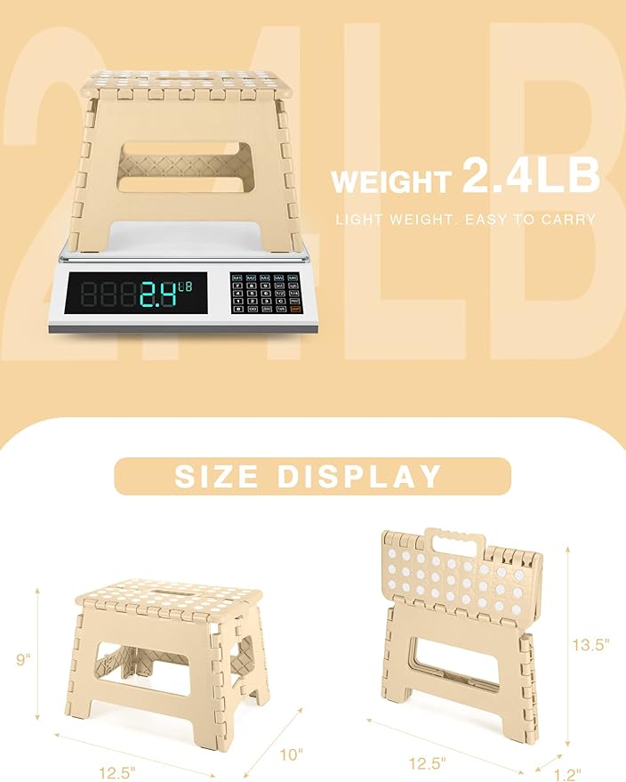 Folding Step Stool 9", Kids Step Stool, Heavy Duty Step Stools for Adults, Compact Foot Stools, Light-Weight Toddler Step Stool for Kitchen, Bathroom, Holds Up to 300 lbs (Khaki)