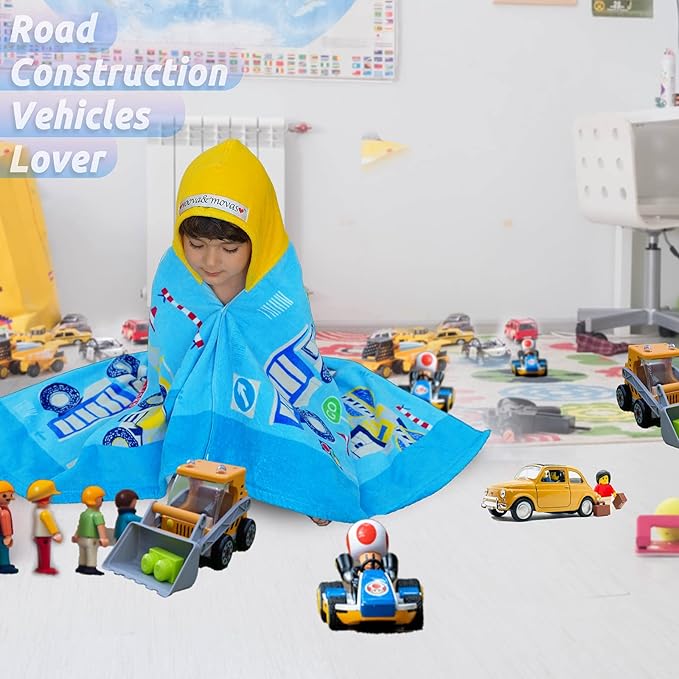 - THE EXCAVATOR VEHICLE BEACH TOWELS : This Hooded COTTON towel wraps adopts an environmentally friendly Printing, the Excavator Vehicle elements make kids towel so gorgeous and attractive that can get children’s love at once! The bright color cars absolutely lovely and make your littles stands out from bath beach or pool
