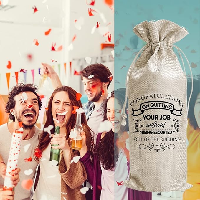 Retirement Gifts Wine Bags, Goodbye Farewell Gifts for Coworkers, Happy Retirement Gifts for Women Men Mom Dad Coworkers Colleague Grandmother Boss Teachers Nurses, Burlap Drawstring Wine Bag