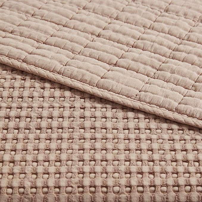 - Timeless Waffle Texture. This bedspread queen size features a classic waffle weave on the front for a tactile, textural look, backed with a smooth coordinating microfiber fabric. Designed to bring tactile dimension and understated elegance to your space—ideal for contemporary, coastal, or minimalist bedrooms.