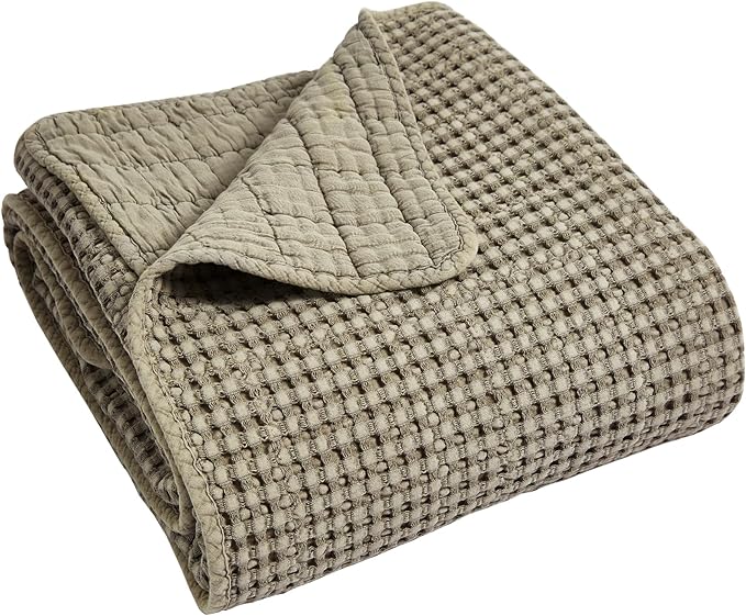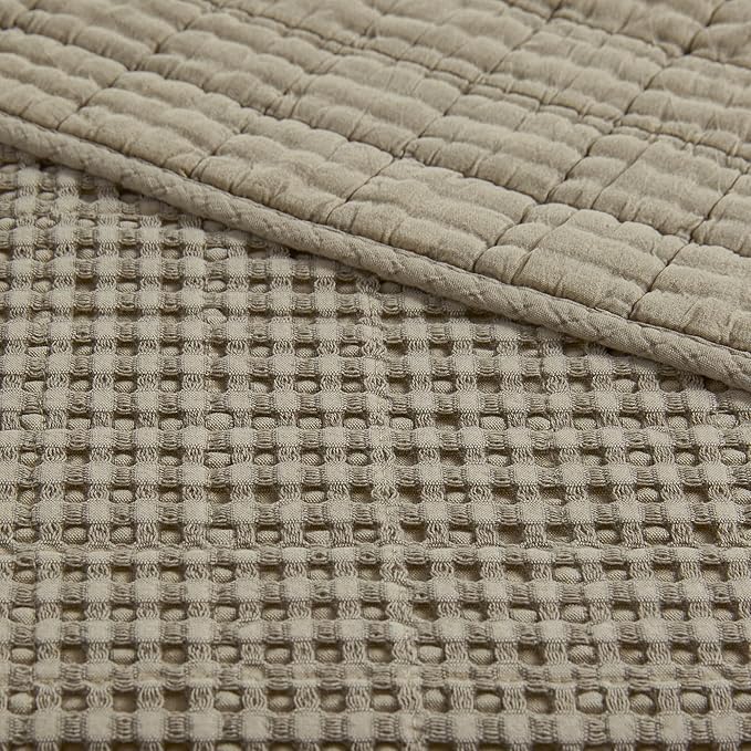 - Timeless Waffle Texture. This bedspread full size features a classic waffle weave on the front for a tactile, textural look, backed with a smooth coordinating microfiber fabric. Designed to bring tactile dimension and understated elegance to your space—ideal for contemporary, coastal, or minimalist bedrooms.