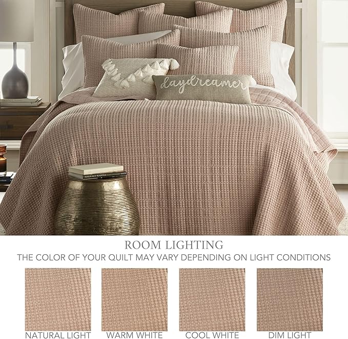 Levtex Home Mills Waffle Full Bedspread Set (100x104in) with 2 Pillow Shams (26x20in) - Blush - Cotton Waffle Full Size Bedspread Set - Lightweight, Soft, Pre-Washed