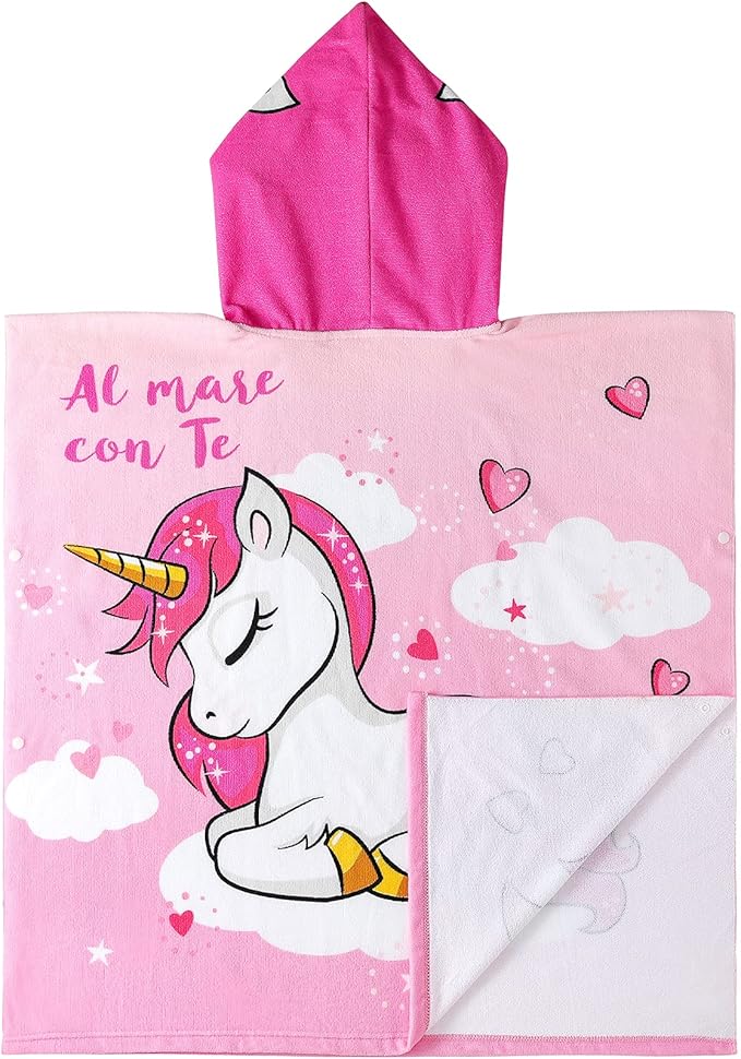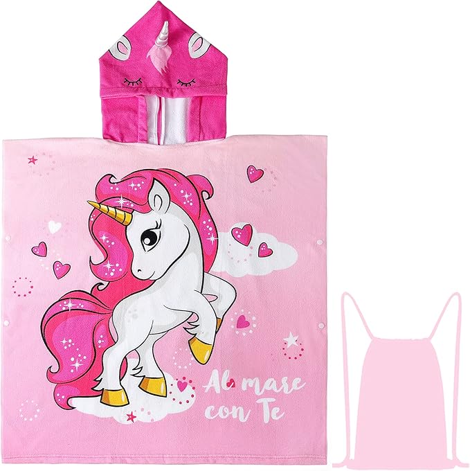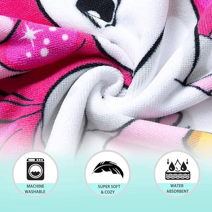 NovForth Kids Beach Towel for Boys Girls, Pink Unicorn Hooded Bath Towel Wrap, Toddler Pool Towel with Hood