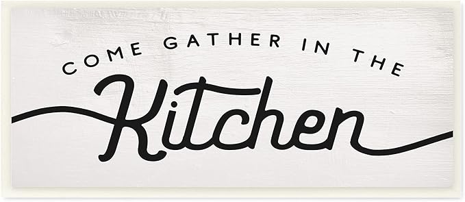 Stupell Industries Come Gather in The Kitchen Sign Family Charm, Designed by Daphne Polselli Wall Plaque, 7 x 17, Off- White