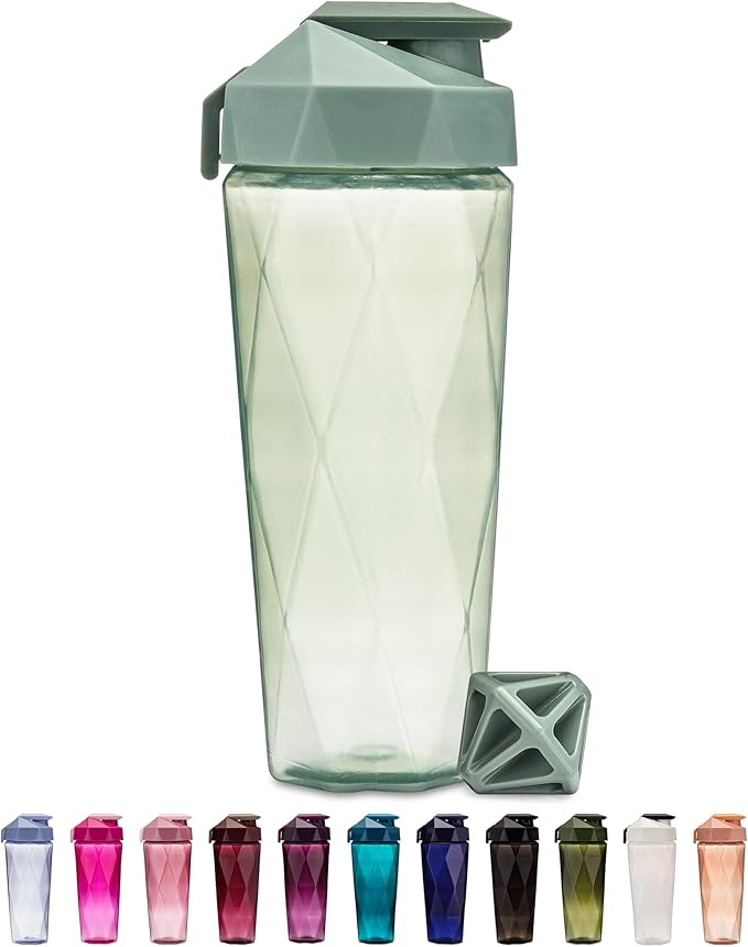Classic 28oz Blender Shaker Bottle | Protein Shaker Bottle with Diamond Agitator | Shaker Cup with Carrying Handle and Dishwasher Safe | Sage - 28-Ounces
