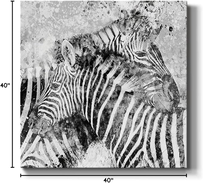 Colorful Animals Painting Wall Art on Canvas Modern Abstract Artwork, Zebra Pair Wall Art, Ready to Hang, 40'' x 40''