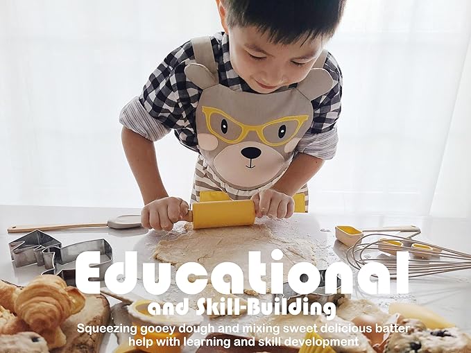 - đ Kids Cooking Sets That Teach Valuable Skills: Help your little one develop dexterity, learn crucial math skills and improve sensory learning, all while enjoying quality bonding time. Bake ooey gooey cookies together, create fun-shaped PBJ sandwiches, decorate tasty cupcakes and more. The creative possibilities are only limited by what you and your kiddo can dream up!