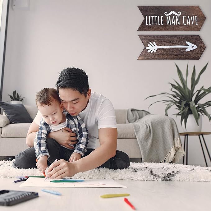 - Arrow Decor For Boys Room Wall Decor - You will receive two 14 x 5 inches rustic sign for kids playroom with little man cave wall sign and inkjet arrow decor printed on. An ultimate man cave accessories for baby boy nursery decor, kids room decor for boys & toddler boy room decor.