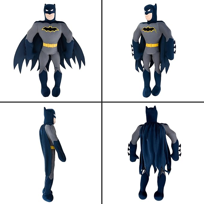 - ITEM INCLUDES: The Batman character shaped plush cuddle pillow buddy measures approximately 21" x 13" x 5". The perfect size to snuggle while sleeping or as a stuffed animal for toddler and children play time.