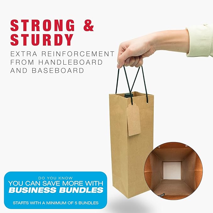 - ♻️ Our FSC-compliant wine gift bags are customizable and perfect for business retail use. The raw kraft surface is also great for arts and crafts, readily absorbing ink for business logo printing and glue for drawing and sticking, while the organic glue is both toxicity and odor free