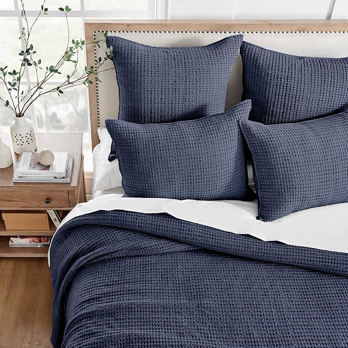 - Timeless Waffle Texture. This quilt queen size bedding set features a classic waffle weave on the front for a tactile, textural look, backed with a smooth coordinating cotton fabric. Designed to bring tactile dimension and understated elegance to your space—ideal for contemporary, coastal, or minimalist bedrooms.