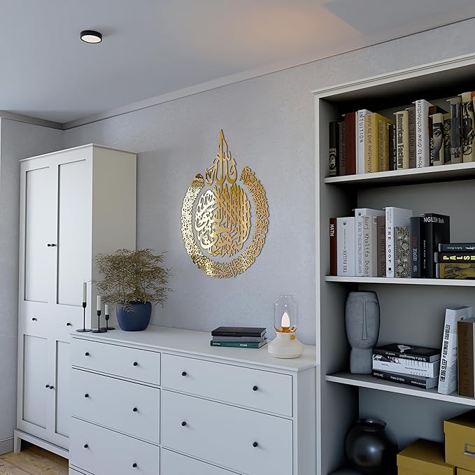 iwa concept Wooden Acrylic Multiple Pieces Ayatul kursi | Islamic Ramadan Wall Decorations | Modern Muslim Housewarming Gift | Arabic Calligraphy | Quran Wall Art (3XLarge 72x54 inches, Gold)