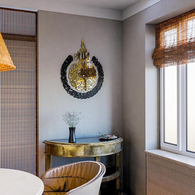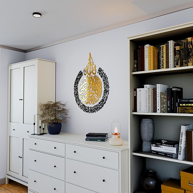 IWA CONCEPT Wooden Acrylic Multiple Pieces Ayatul kursi | Islamic Ramadan Wall Decorations | Modern Muslim Housewarming Gift | Calligraphy | Quran Wall Art (3XLarge 72x54 inches, In Gold Out Black)