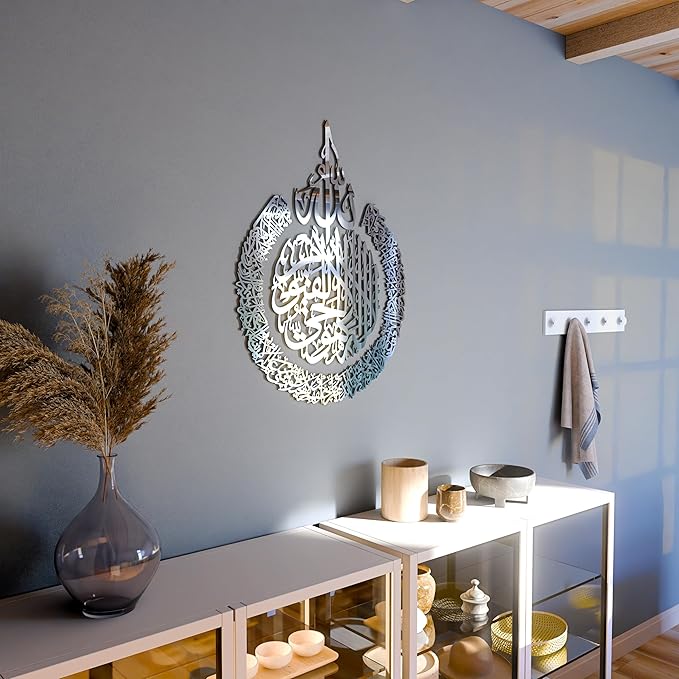 iwa concept Wooden Acrylic Multiple Pieces Ayatul kursi | Islamic Ramadan Wall Decorations | Modern Muslim Housewarming Gift | Arabic Calligraphy | Quran Wall Art (3XLarge 72x54 inches, Silver)