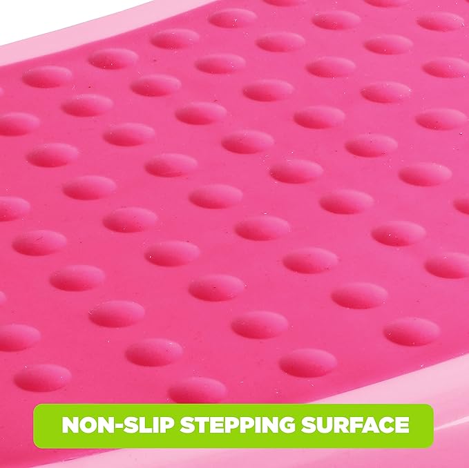 - NON-SLIP SURFACE AND FEET: Stiff gripping rubber on both the top and bottom, allow your child to stay planted on top while the stool stays firmly on the ground