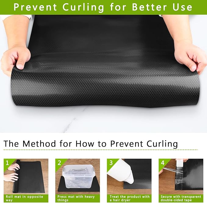 - CONVENIENT TO CLEAN: Shelf liner kitchen cabinet and drawer mats is water resistant and wipeable. When the refrigerator shelf liner is stained with oil or other dirt, you can easily wipe the dirt with mild soap and a damp cloth or sponge and fast to dry. It’s perfect decor for organizing your space and home!