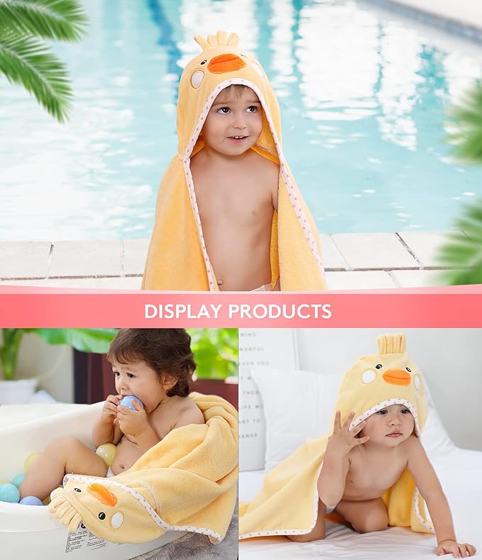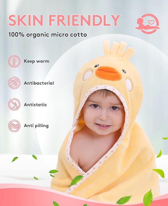 Hooded Towel for Kids 100% Cotton Ultra Soft with Unique Animal Design Large for Infants 3-10 Years (Chick)