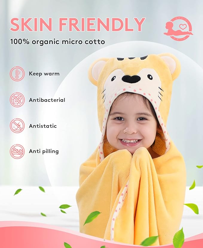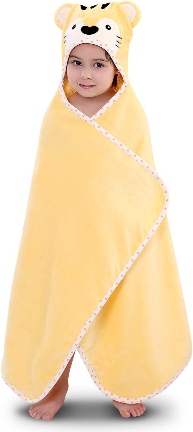 Hooded Towel for Kids 100% Cotton Ultra Soft with Unique Animal Design Large for Infants 3-10 Years (Tiger)