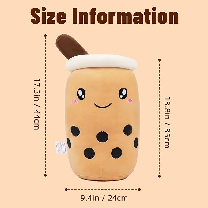 - 🥂Size and Material. 20 inches big boba plushie is large enough for babies and kids. Adorable boba plush toy is made from PP cotton which is stretchy, soft and comfortable.