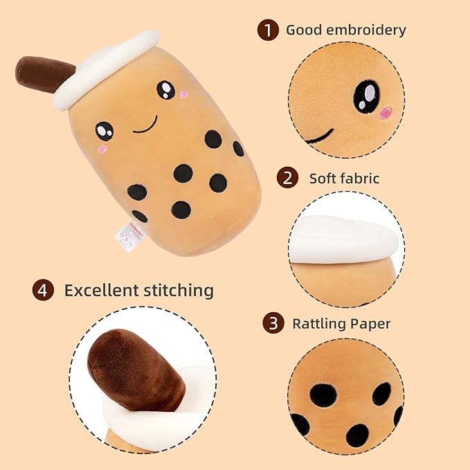 - 🥂Gift Idea: Our bubble tea plush toy pillow is a wonderful gift idea for a kid's birthday, anniversary, Valentine's Day, Christmas and so on. The boba plushie has a cute design that will appeal any boba lover.
