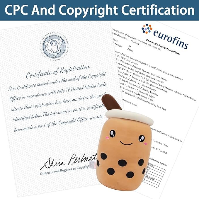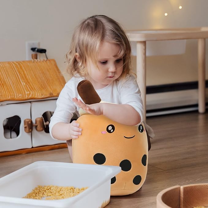 - 🥂Safe for Children. Suitable for 3+ yrs. The boba tea plushie doesn’t have any removable accessories or items that can be swallowed. There is NO Zipper to Avoid kids open the plush pillow and eat the filler!
