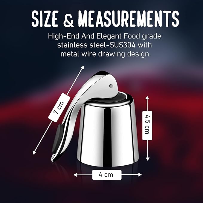Stainless Steel Wine Bottle Stopper, Wine Vacuum Stopper with Silicone Seal, Reusable Wine Saver Plug to Keep Wine Fresh, Leakproof and Airtight Seal Toppers for Bottles 1 Pack