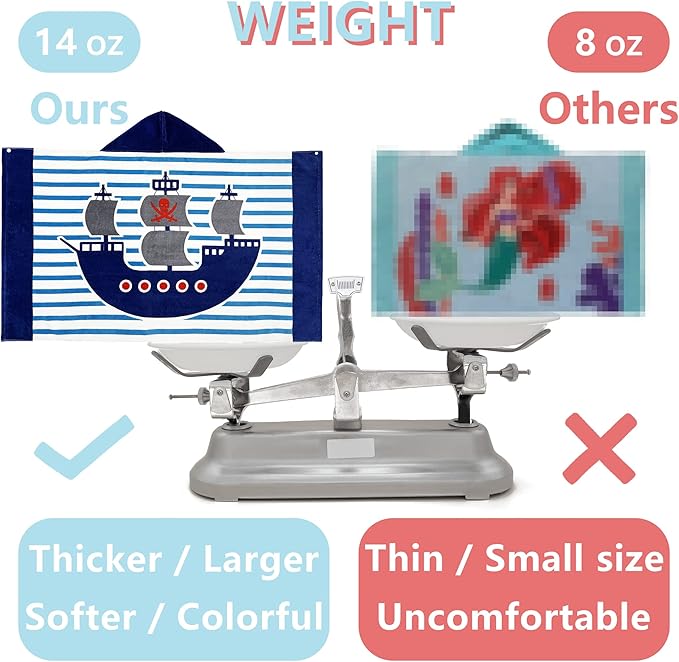 - 【OVERSIZE SIZE KIDS TOWEL】: A hooded towel bath wrap measuring 50" x 30" (127 x 76cm) with a 10" x 10"(25 x 25cm) hood.It comes in at 14 ounces(400 grams),it's pretty thick!Suitable for toddlers&kids from 5 to 12 years old.It is big enough to accompany your child's growth