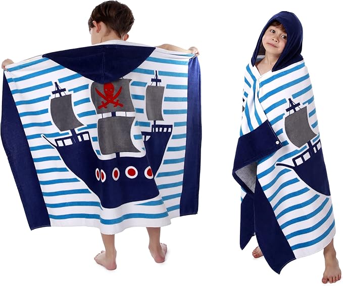 Kids Hooded Beach Bath Towel, Baby Surf Poncho Toddlers Soft Real Cotton Wrap Hooded Towels for Kids Boy Girl