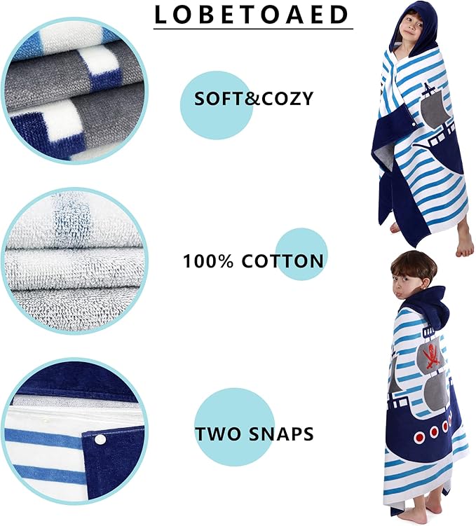 - 【MORE FRIENDLY DESIGN for KIDS】: Our baby bath & hooded towel has two snaps on the side to help you wrap your child up in comfort and playful style.This surf poncho is easy to put on and off, and will not slide down from body.The hood can helps dry your child's hair. We have many cute cartoon styles suitable for boys & girls like Dinosaur, Mermaid, Cat, Unicorn, Shark, Car, Narwhal...