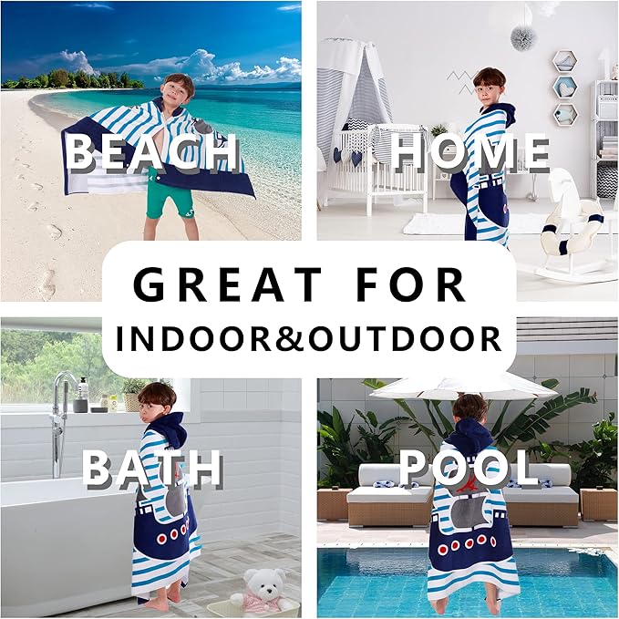- 【MACHINE WASHABLE & NO FADE】: It can full cover up your child when they need to change clothes at beach or pool. Wearable bath towel is perfect for indoor and outdoor, bathroom, home, beach or pool accessory. Thanks to the excellent quality of the toddler towels, you can put it in the washing machine and dryer without worrying about the pattern fading