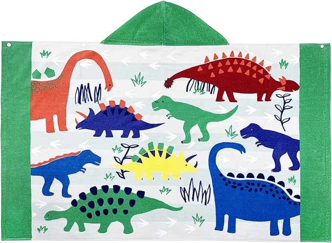 BANGSAUR Kids Hooded Beach Bath Towels, 100% Cotton 50"x30" Wrap Blanket, Toddlers Boys 3-12 Years Coverup Towel Dinosaurs