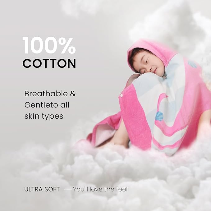 - 100% Quality Cotton: The beach hooded towels are perfect for your kids’ delicate skin! The hooded towels for kids are made of 100% soft cotton in premium 400-gram weight fabric, long-staple terry cotton inside and absorption woven of thick cotton velour outside,super soft, absorbs well, ultra-comfy and cozy, Oeko-Tex Certified, eco-friendly dyes and a UPF 50+, no harmful substance. Perfect bath towel, perfect love!