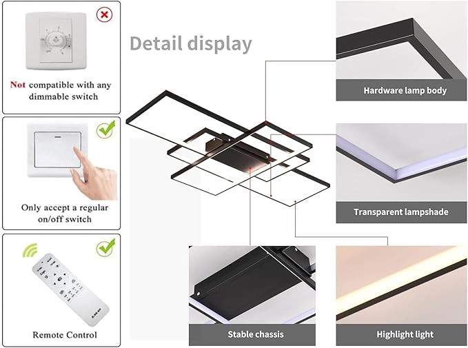 - Eyes Protection: Modern ceiling light has a built-in high-quality LED chip array, which can provide reliable brightness to every corner of your room. The eye protection design, uniform light emission, no flicker, no infrared or ultraviolet rays, can protect the eyes from strong light and strong light. It can be used for reading, sleeping and other activities